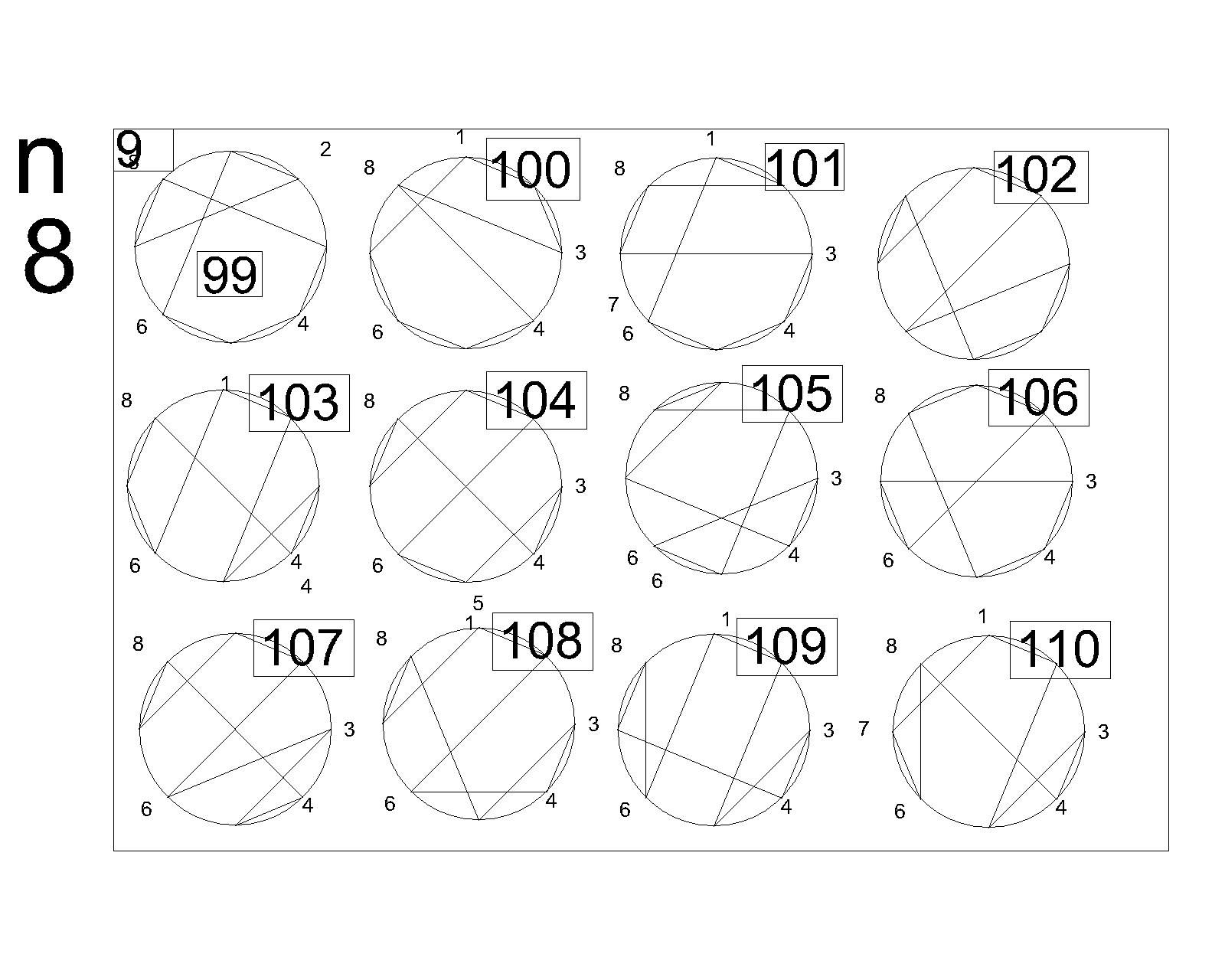 I worked out on unicursal pattern on polygram and found that the sequence does not exist for distinct patterns excluded differential on orientations and reflections.